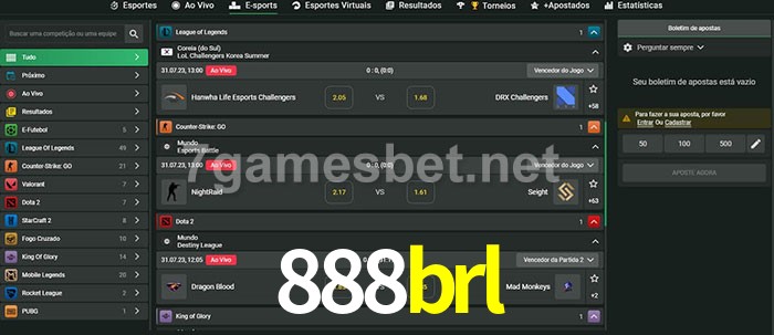 O 888brl oferece uma grande seleção de opções de apostas em e-sports com probabilidades competitivas